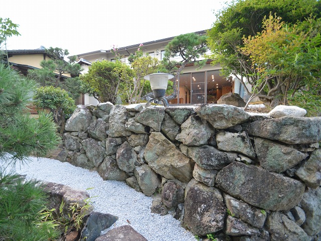 この邸宅は四方を道路に囲まれています。現在では再現不可能とさえ言われる、天然の素材を用いた石垣は世界遺産「元離宮・二条城」の石垣と同様のもの。